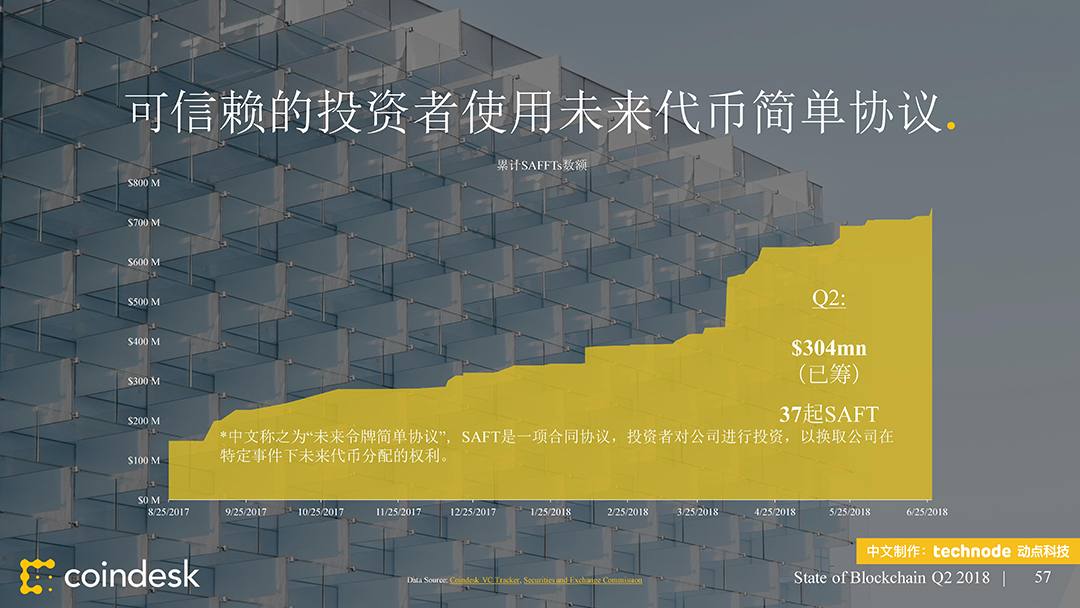 针对区块链职业的出资继续蓬勃发展,项目筹款规划以及产品结构的杂乱程度也明显添加。来自美国证券买卖委员会 EDGAR 数据库的数据显现,有 37 家公司提交了包括“未来代币简略协议”的文件。这些 SAFT 在三个月内共筹集了 3.04 亿美元。