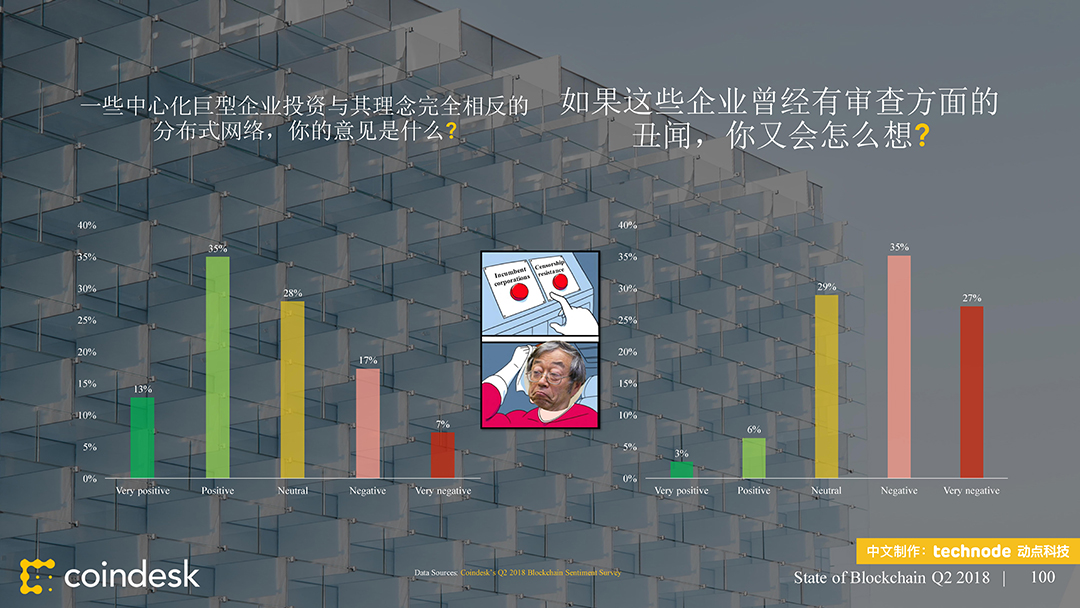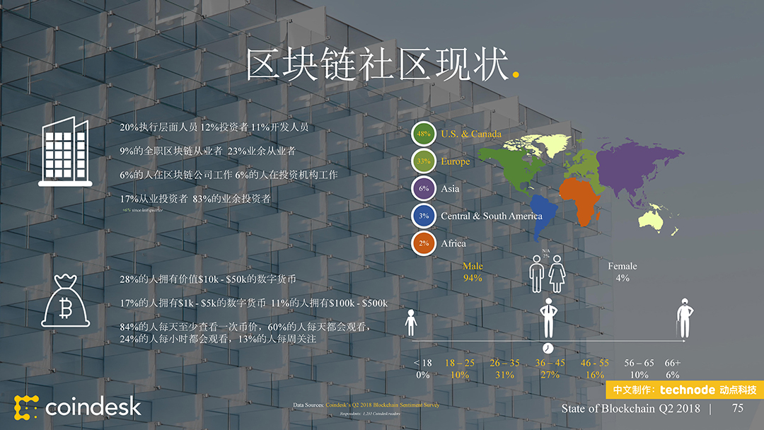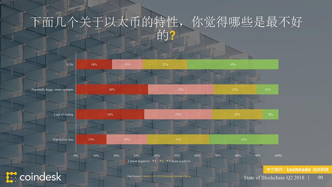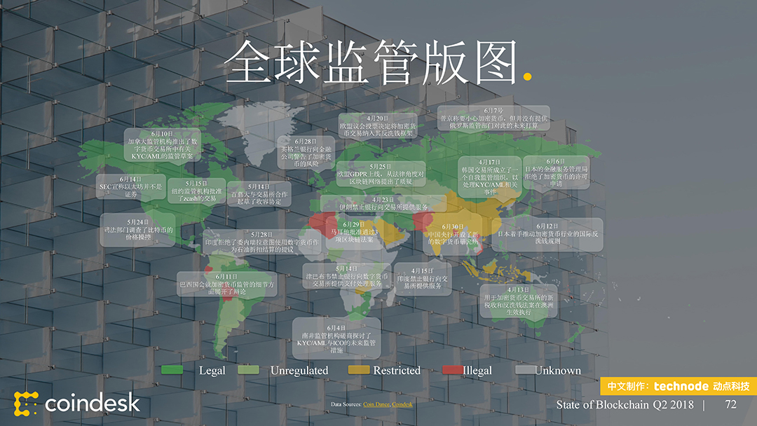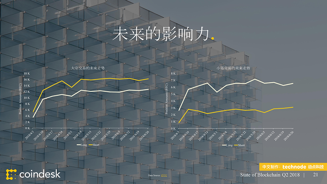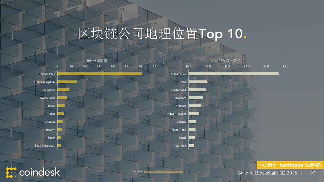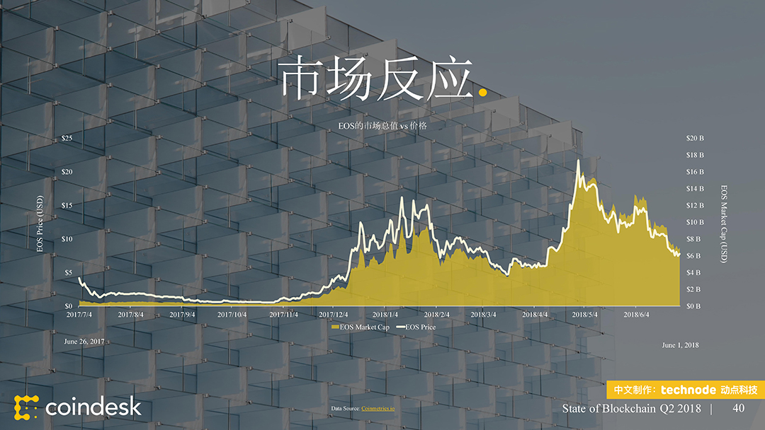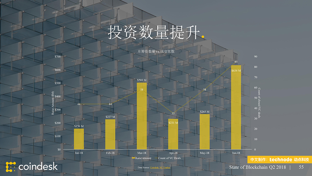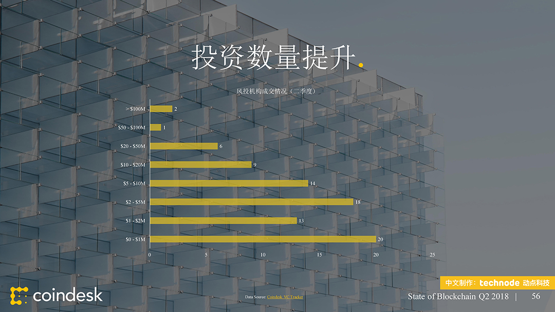 ,动点科技获得了该陈述的中文版翻译和发布授权。本次发布的 2018 年第二季度区块链陈述供给了 100 多个职业新闻和数据的幻灯片剖析,从公共区块链、区块链出资、区块链公司、监管、以及民众情绪等方面剖析全球区块链职业动态。接连第二个季度,区块链职业受负面的商场目标所困。这些下行趋势中的大多环绕买卖活动,其间包括大部分买卖对(Trade Pair)买卖量的下降。在买卖所数字之外,加密钱银的运用和开发人员作业的推动,比特币和以太币都取得了里程碑式的发展。